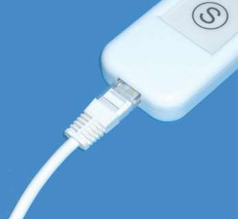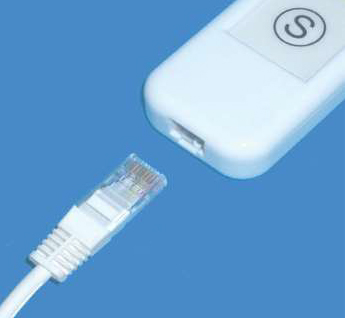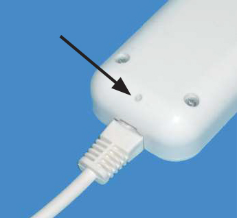 Pour cela, il suffit d'insérer la "tige" dans le trou pour déverrouiller la fiche, enlever le cordon en tirant, puis de remettre le nouveau cordon en branchant le connecteur RJ45 dans la prise du manipulateur jusqu'au "Clic".
